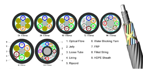 - Micro-modules: PBT material containing 12 optical fibers and filled with a suitable water tightness compound with easy strip ability.